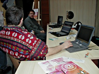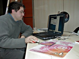 Le samedi 11, l’après midi était consacrée à des démonstrations du système d’exploitation Linux et de logiciels libres. Au programme : SPIP, Gimp, OpenOffice.org, FireFox et NVU... des classiques.