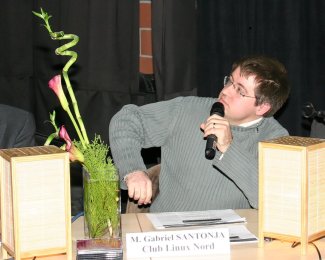 Gabriel Santonja et Rémi Lévy continuaient avec un exposé sur l’alternative que représentent les Logiciels Libres au téléchargements et copies illégaux. Une présentation « empruntée » au Lug Toulibre et disponible sous licence Creative Communs servait de support visuel : qu’est-ce qu’un logiciel, qu’est-ce qu’un logiciel libre, les licences, l’éthique du libre, son intérêt et pour finir Gabriel ne put éviter d’aborder la loi DADVSI ainsi que le dernier arrêté de la cour de cassation qui s’appuie sur l’EUCD et qui rend la copie privée de films totalement illégale.