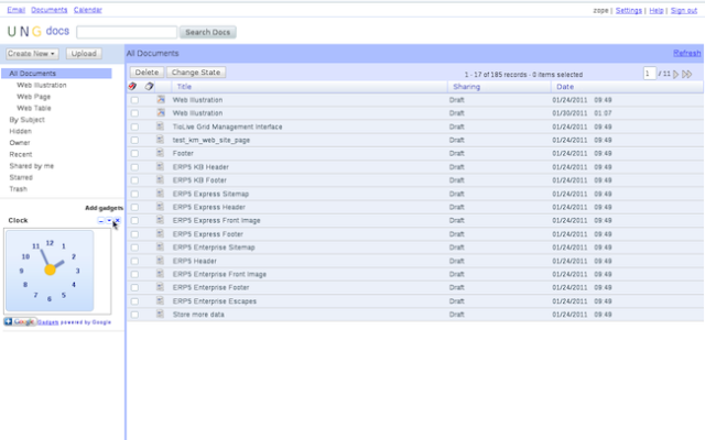 – Le Cloud Computing est mort, vive le cloud. La présentation de UNG (UNG is not G.....) est une tuerie : un équivalent Libreoffice online en javascript/html5 dans le browser sans hébergement de données