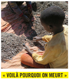 Les appareils portable que nous utilisons sont dotés de batteries pour lesquelles l’extraction du cobalt est nécessaire. Ce métal, qui n’est pas extrait dans des zones en guerre, échappe à toute volonté de légiférer sur le plan international. De mines artisanales dans le sud de la République démocratique du Congo (ex-Katanga), où travaillent notamment des enfants dans des conditions dangereuses et toxiques, on le retrouve dans la chaîne d’approvisionnement des multinationales de l’électronique.
