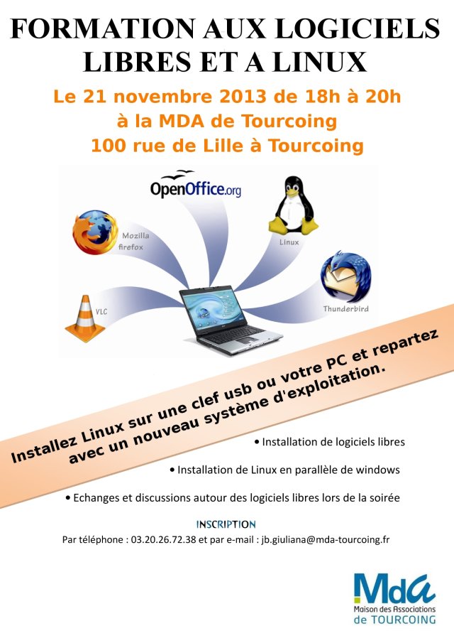 MDA Tourcoing : Formation à Linux et aux Logiciels Libres, le jeudi 21 novembre 2013