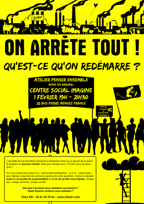 On nous invite sans cesse à la démocratie participative et à la citoyenneté pour décider ensemble du vernis qui agrémente notre quotidien. Invitons à décider aussi de la société de consommation et de la vie qu’elle nous impose, chaque jour, chaque semaine, chaque année :