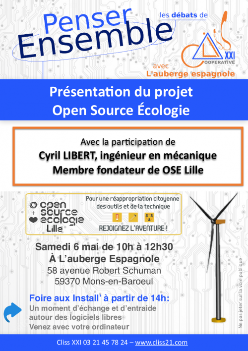 Notre prochain débat Penser ensemble se tient le samedi 6 mai, de 10h00 à 12h30, à L’auberge espagnole, à Mons-en-Baroeul.