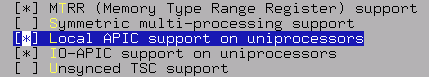 Enfin, nous trouvons l’option tant recherchée, LAPIC, intégrée au noyau. Décochons-la.