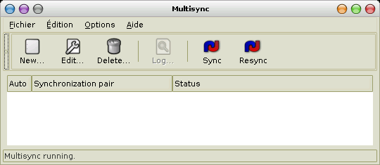 Démarrez multisync, soit depuis le menu GNOME, soit depuis une console. Ne vous étonnez de traces de debuggage si vous l’avez démarré depuis la console, c’est normal.